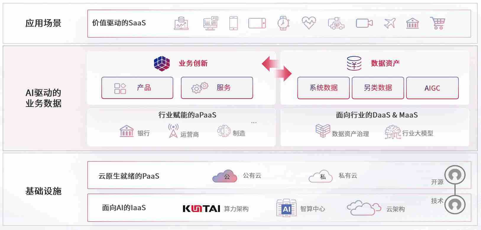数字时代,,,围绕企业数字化转型的关键要素,,,开元数码开创性的提出数云融合战略和技术体系框架,,,着力在云原生、、数字原生、、AI原生和信创产业上架构产品和服务能力,,,,为处在不同数字化转型阶段的快消零售、、、汽车、、、、金融、、、、医疗、、、、政企、、教育、、运营商等行业客户提供泛在的敏捷IT能力和融合的数据驱动能力,,,,构建跨界融合创新的数字业务场景和新业务模式,,,,助力企业级客户建立面向未来的核心能力和竞争优势,,全面推动社会的数字化、、、智能化转型升级。。。