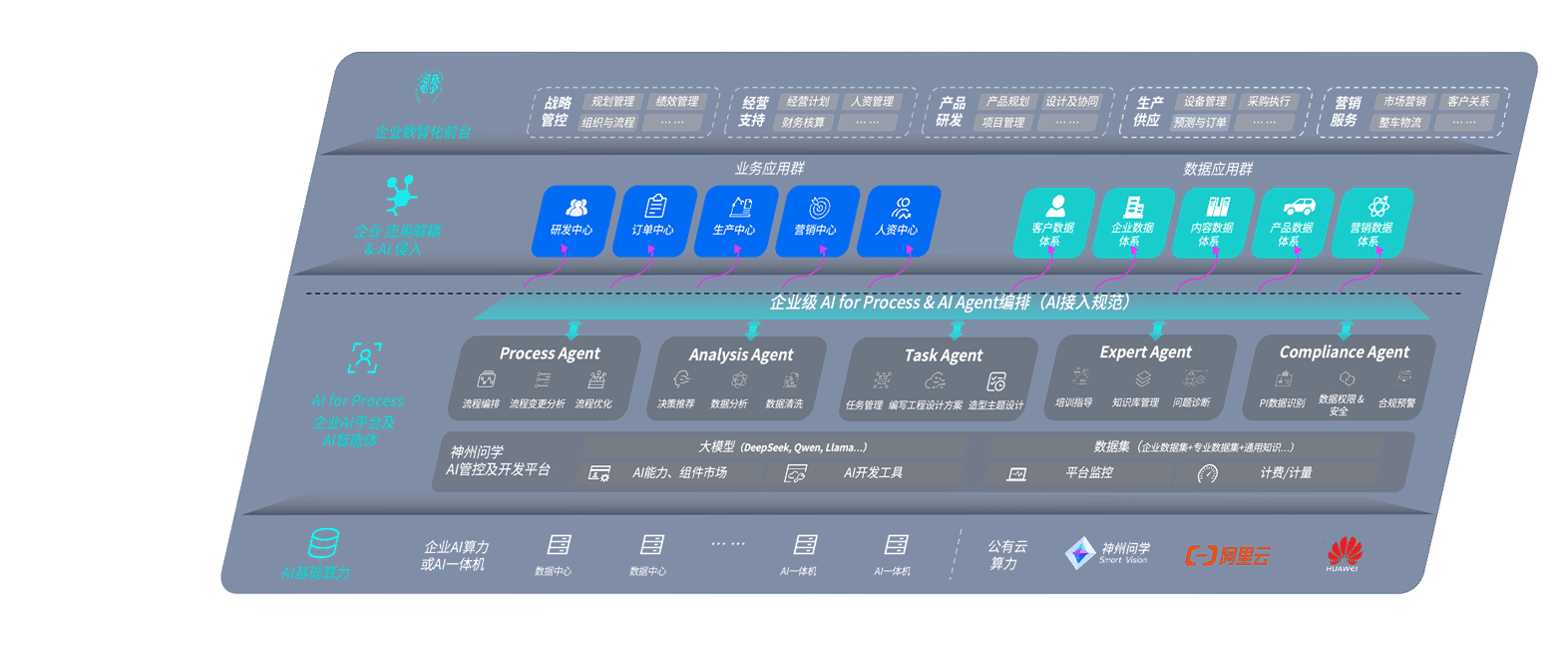 开元问学智车解决方案是一套基于AI技术的汽车行业智能化系统,,,覆盖从底层算力到顶层AI应用的全栈方案。。。方案由算力层、、、模型层和应用层组成:算力层,,,方案支持多种一体机配置,,,具备云端灵活部署、、多云适配以及动态优化计算资源的能力;模型层,,,开元问学平台版提供了企业级AI应用一站式构建与管理平台,,,,支持基于后训练强化技术的汽车企业专属模型的训练、、、评测和运营;应用层,,开元问学DeepSeek版提供包括超级员工、、智能招采、、、智能营销、、、智能客服、、、AI for BI等一系列解决方案,,可助力汽车行业实现数字化转型,,,让管理更智能、、响应更敏捷。。。